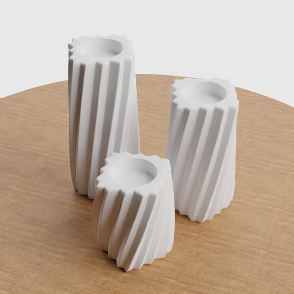 Bogactwo Stylów Oferujemy świeczniki wykonane z materiału PET-G, który jest trwały i odporny na czynniki zewnętrzne., w technologii wydruku 3D. Dzięki tej technologii, świeczniki charakteryzują się precyzyjnym wykonaniem oraz wyjątkowym, nowoczesnym wyglądem. Oferujemy świeczniki w różnych stylach – od minimalistycznych po bardziej dekoracyjne – co pozwala na idealne dopasowanie do każdego rodzaju wnętrza.. Nasze świeczniki dostępne są w wielu stylach – od klasycznych, przez rustykalne, aż po nowoczesne i minimalistyczne, co umożliwia znalezienie idealnego modelu do każdego pomieszczenia.